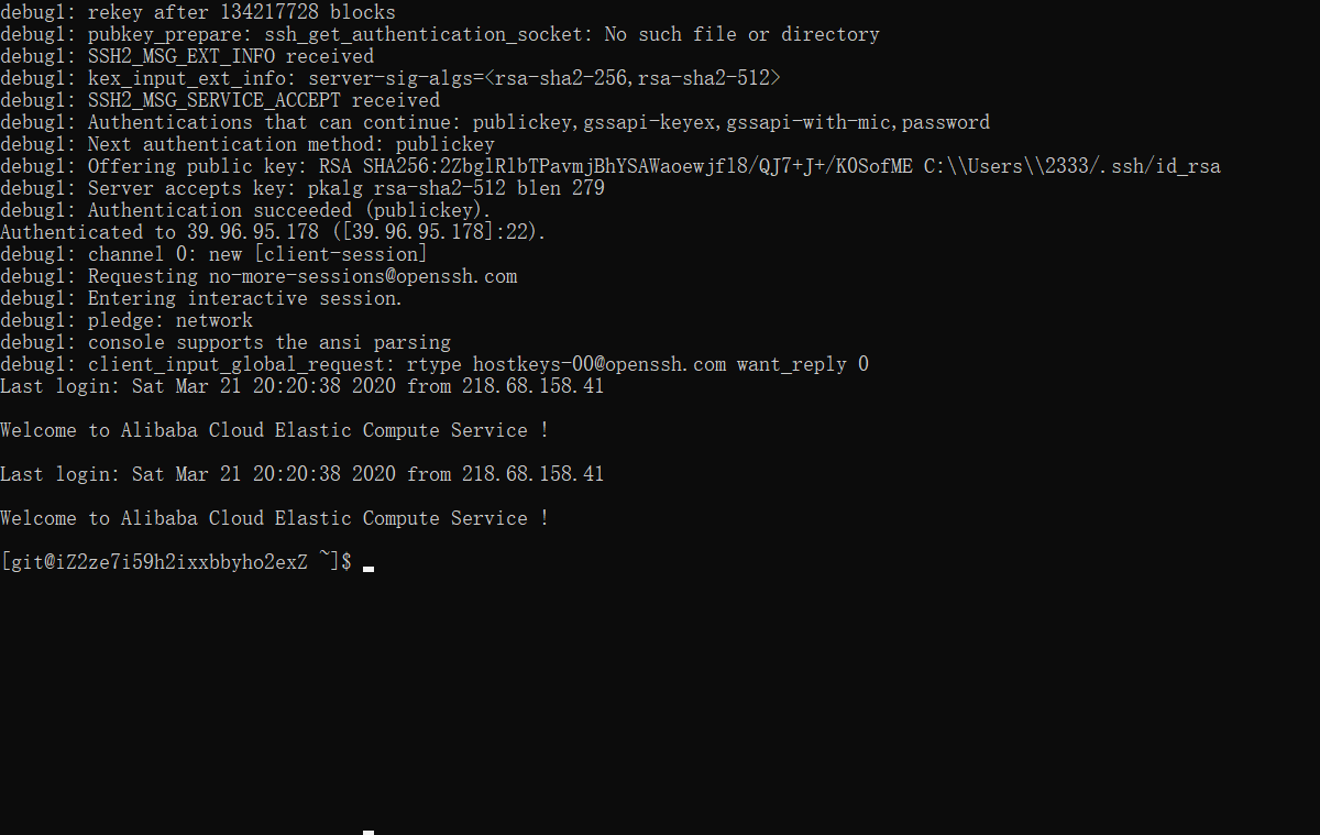 以上指令都需要在su git 之后执行 如果中途断开重新连接过,需要重新执行 su git指令 进入git账户。