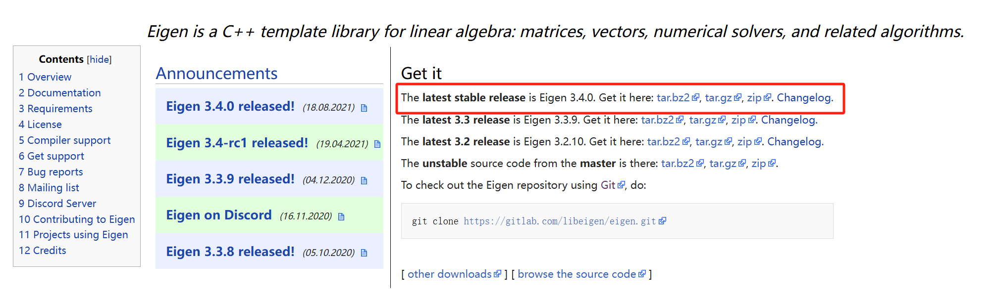 Eigen是一个C++模板库, 提供了线性代数的基本功能, 可以在此网站下载: Eigen