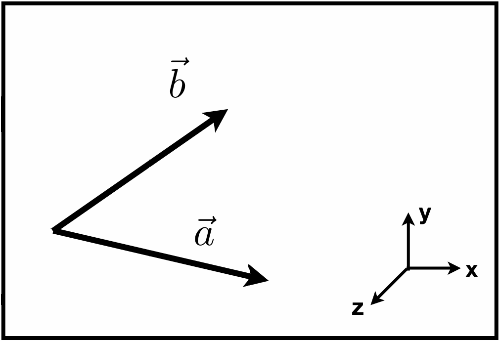 - 判定左和右: 例如, 在屏幕上, 向量$\vec{a}$和向量$\vec{b}$的叉乘结果的$z$分量的正负可以判断$\vec{a}$在$\vec{b}$的左边还是右边