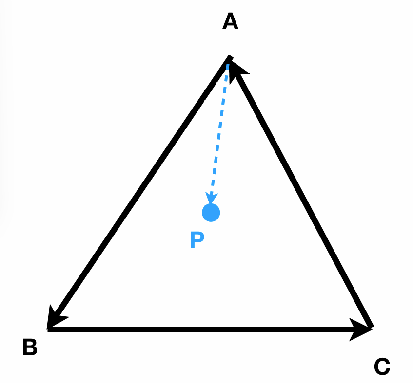 - 判定内和外: 例如在三角型中, 要判断点P是否在三角形ABC内部, 可以通过向量$\vec{AB}$和向量$\vec{AP}$的叉乘结果的$z$分量的正负来判断