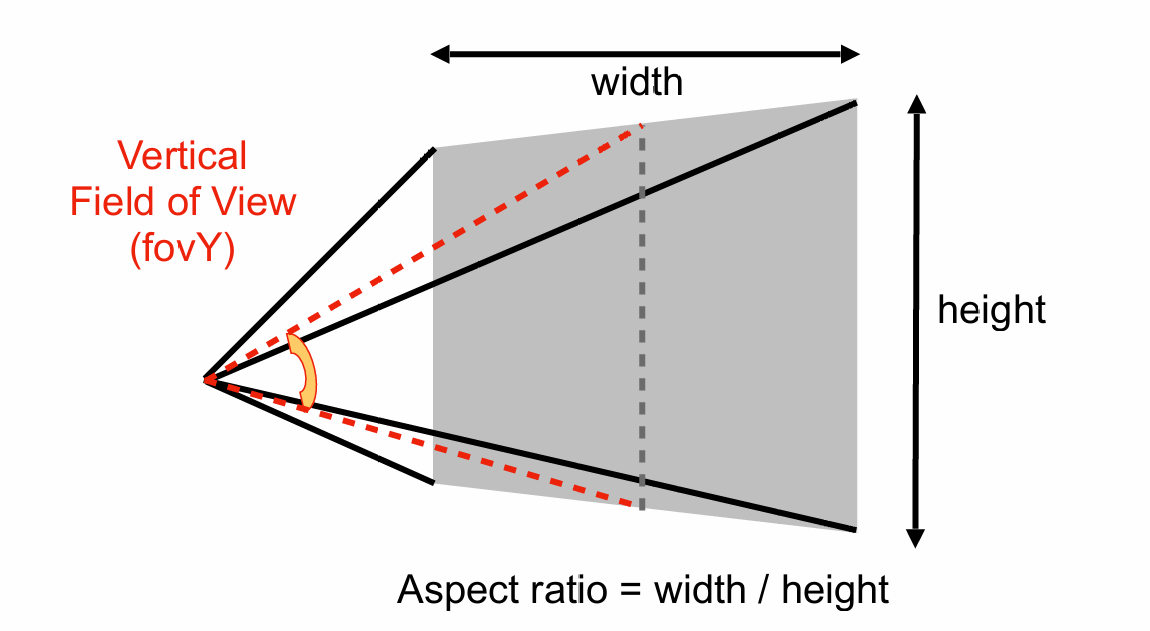 - 竖直方向的视野角 fovY: 两条红线所夹的角度