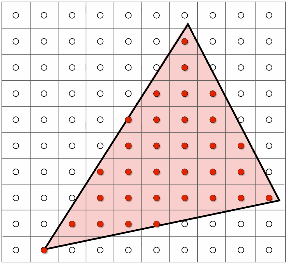 光栅化中的采样则是利用像素中心, 对屏幕空间进行采样