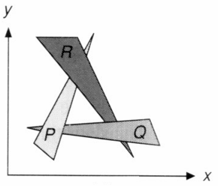 但是画家算法有一个问题, 如果两个物体互相遮挡, 那么就会出现问题, 如下图所示: