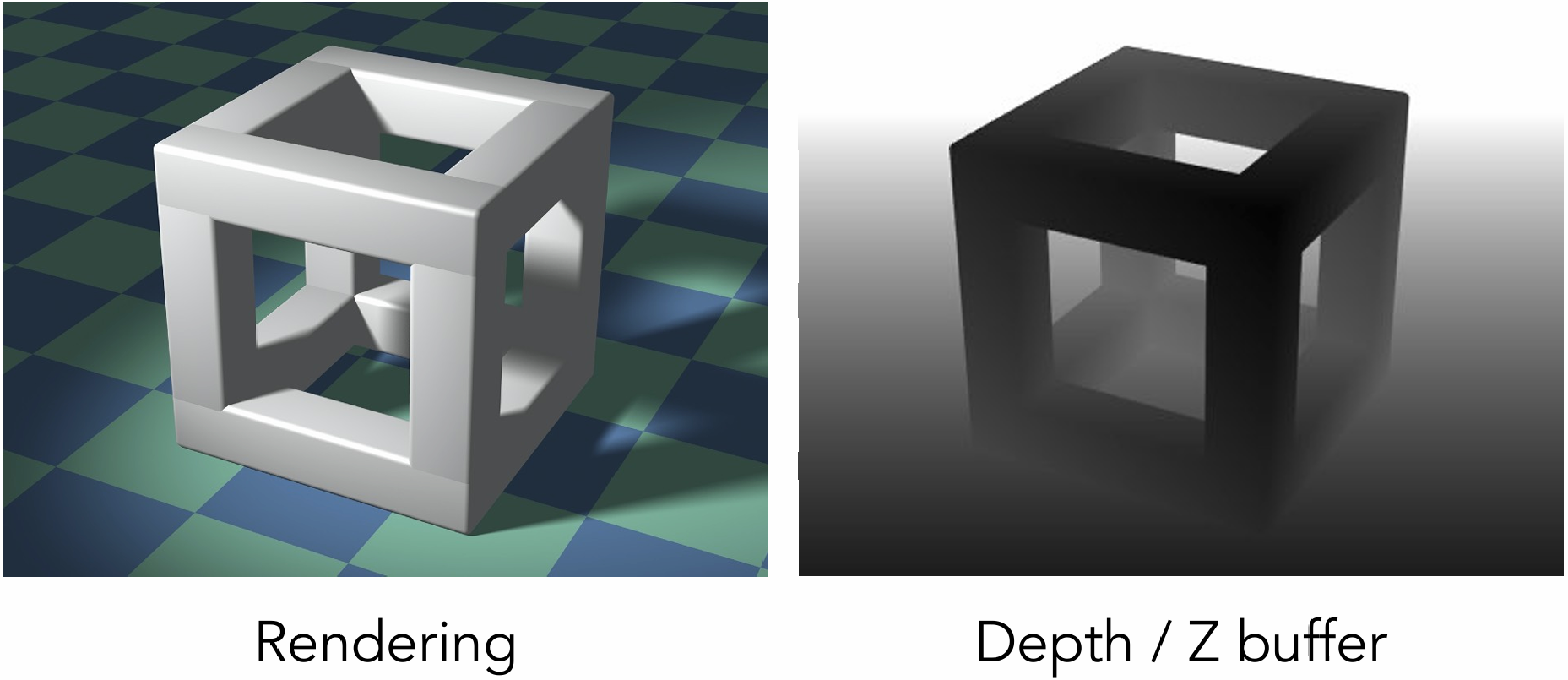 - 最终图象叫做Frame Buffer, 深度信息的图象叫做Depth Buffer, 两者同时生成