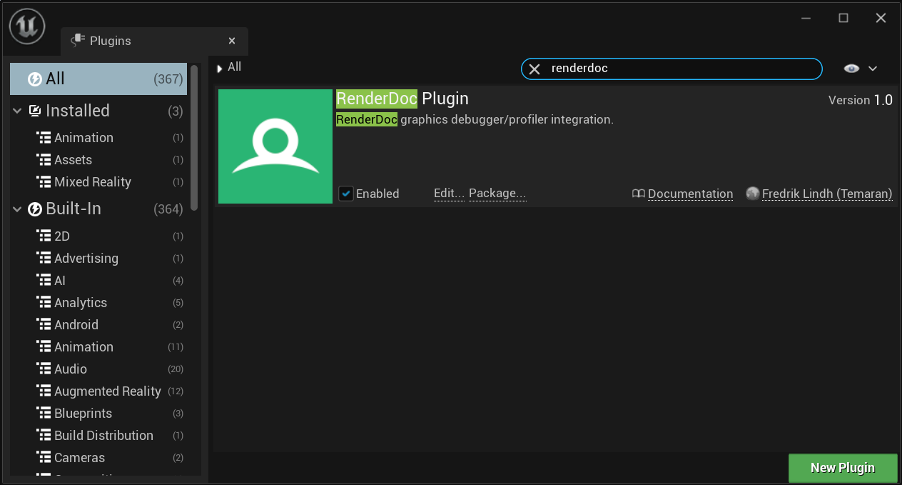重启引擎。 - 重启后,场景视图右侧会出现RenderDoc按钮。