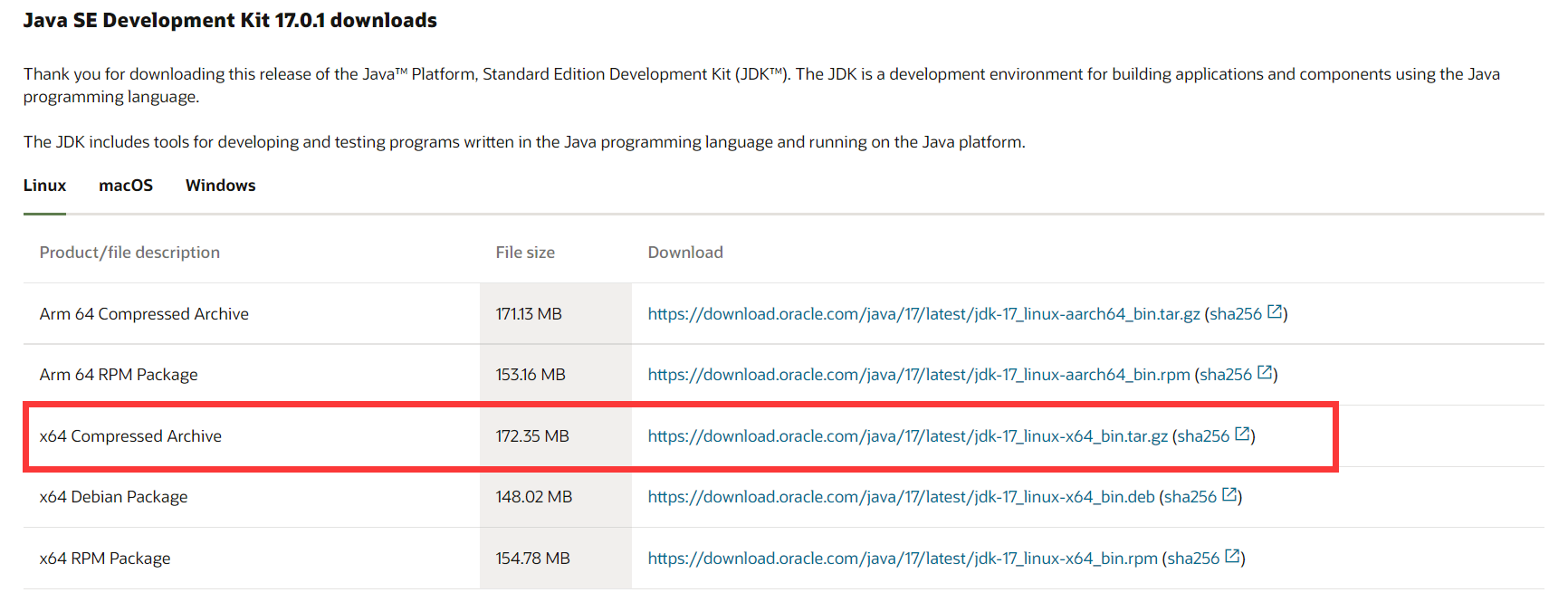 wget https://download.oracle.com/java/17/latest/jdk-17_linux-x64_bin.tar.gz