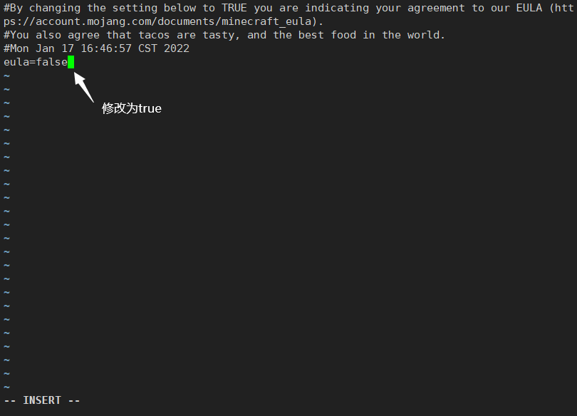 打开eula.txt文件,键入 i