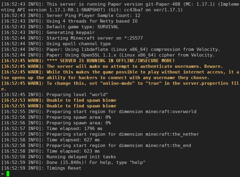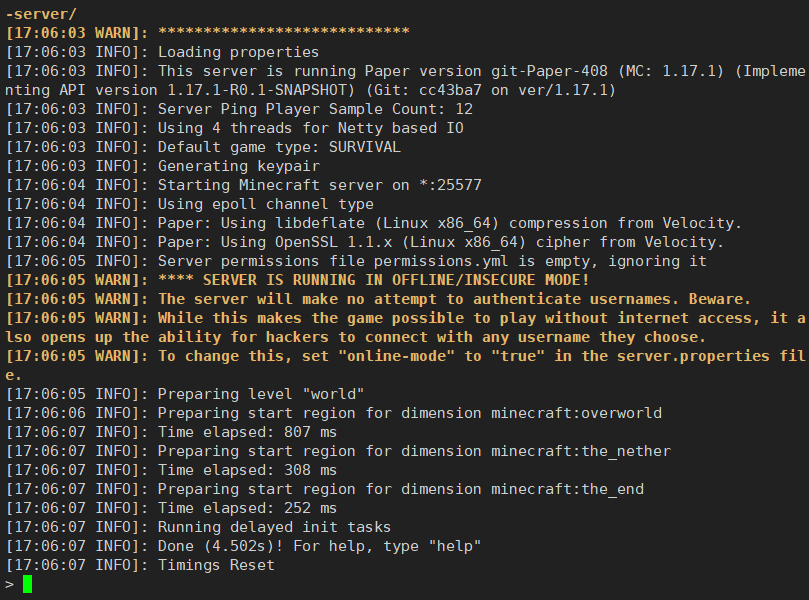 由于安装过程两者相同,这里由Paper插件核心(Minecraft 1.17.1版本做演示):