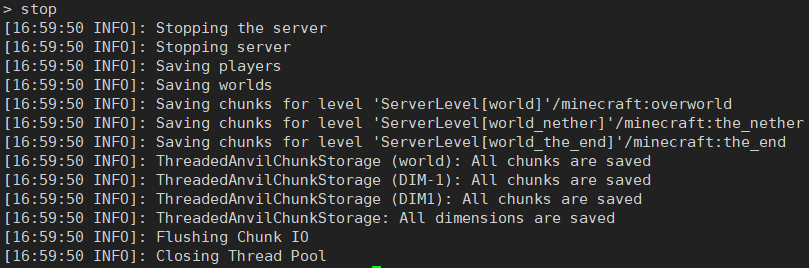 并回车,当前运行的服务器核心将停止运行: